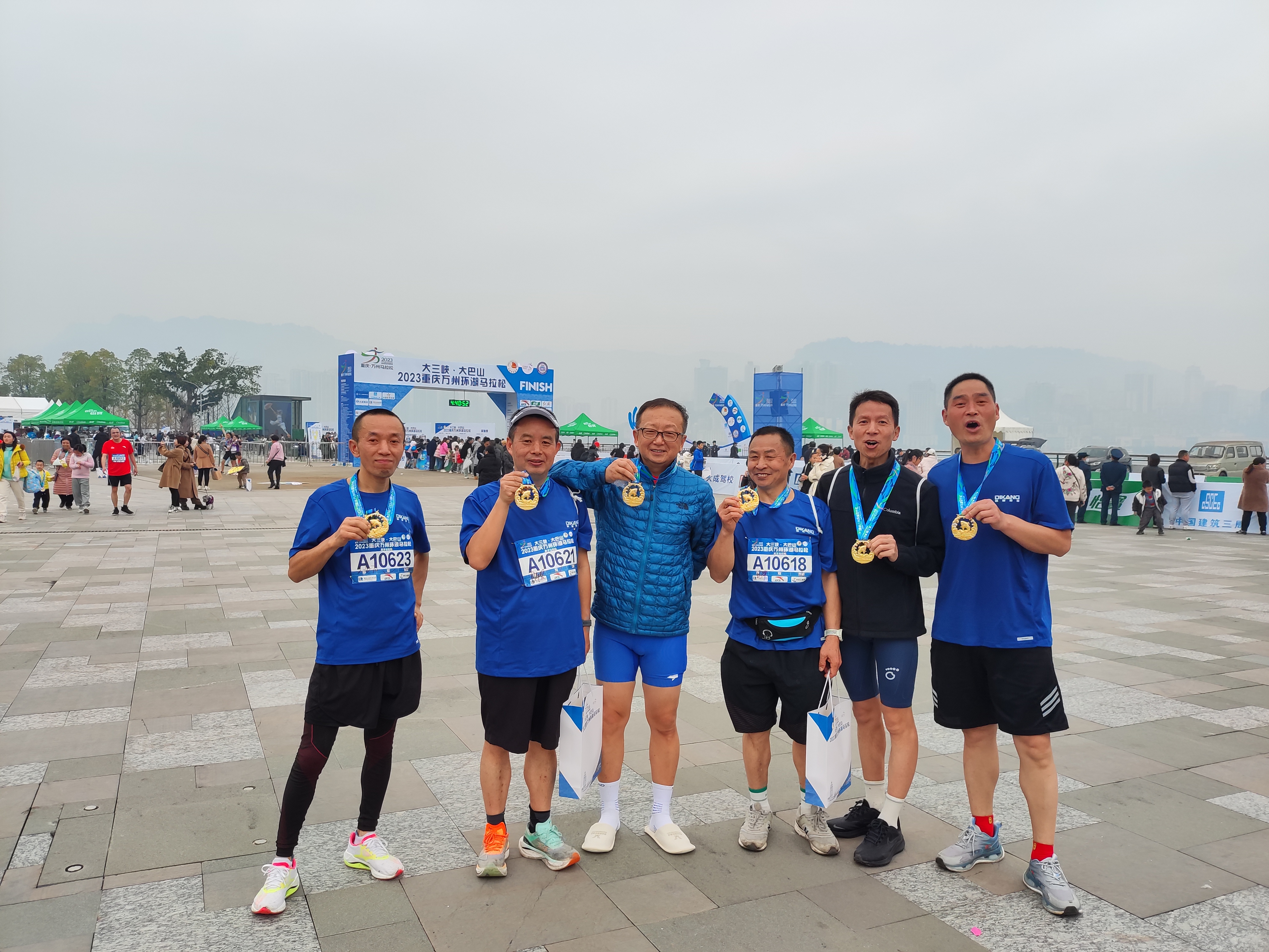 赛后,迪康人纷纷合影留念,骄傲展示完赛奖牌。